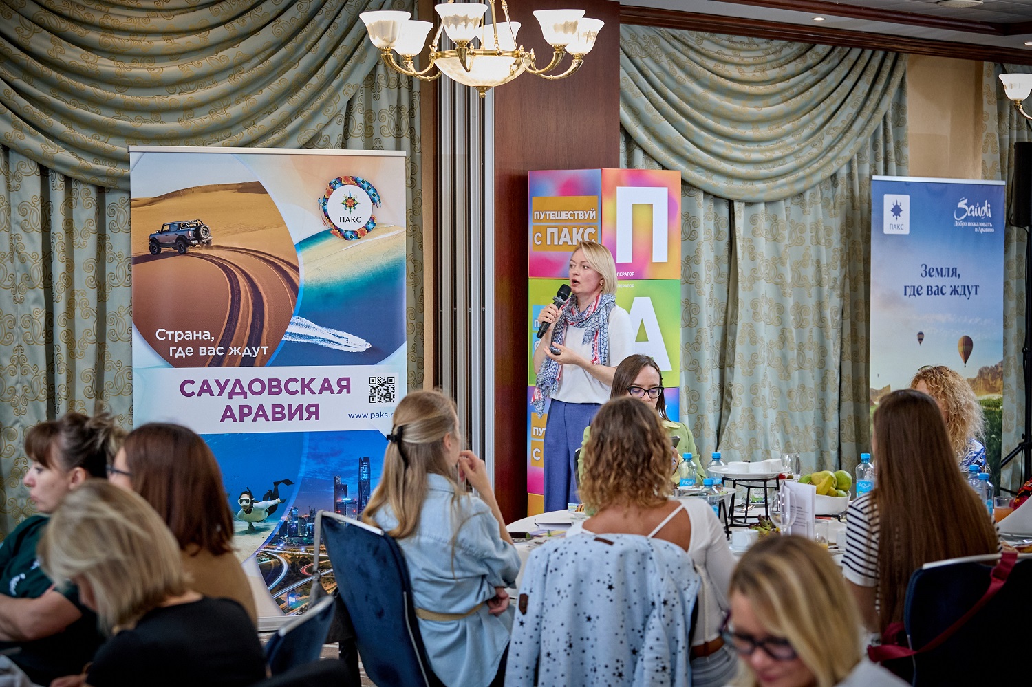 Это принцип ПАКС: если мы представляем направление онлайн или офлайн, это обязан делать сотрудник, который знает всё — где селить детей с аллергией, какие отели точно не подойдут для малышей, где какие особенности входа в море на том или ином курорте. Недопустимы фразы «я давно там не была», «я уточню и потом отвечу». Поэтому ПАКС и выбирает формат, когда в зале первые лица по продукту, а не случайные спикеры.