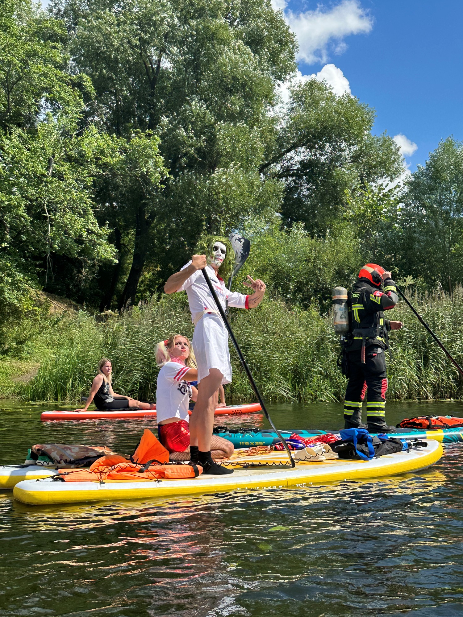 Еще одна фишка Суздаля — это сапы. В минувшие выходные в городе прошел карнавальный сплав, что тоже привлекло в город дополнительных гостей. Но экскурсии на сапах проводятся каждый день: на реке постоянно можно увидеть группы туристов — они сплавляются с наушниками, в которых звучит голос гида. Весной, кстати, сапы выдают бесплатно, местные жители и туристы очищают реку Каменку от мусора.