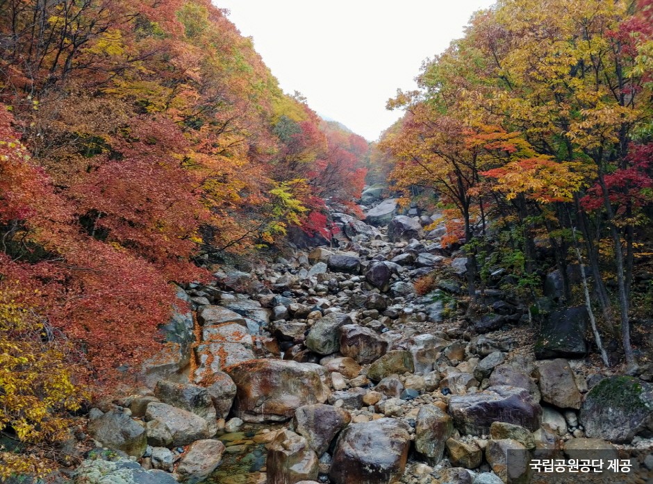Jirisan National Park — огромный национальный парк, где осенью горные тропы покрываются огненными кленовыми листьями. Живописные сезонные маршруты проходят по лесам и возле храмов.