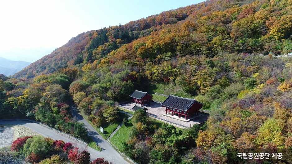 Гора Odaesan расположена в популярном среди туристов районе рядом с храмом Woljeongsa. Осенью клены добавляют особенно ярких красок в палитру ее осенних пейзажей.