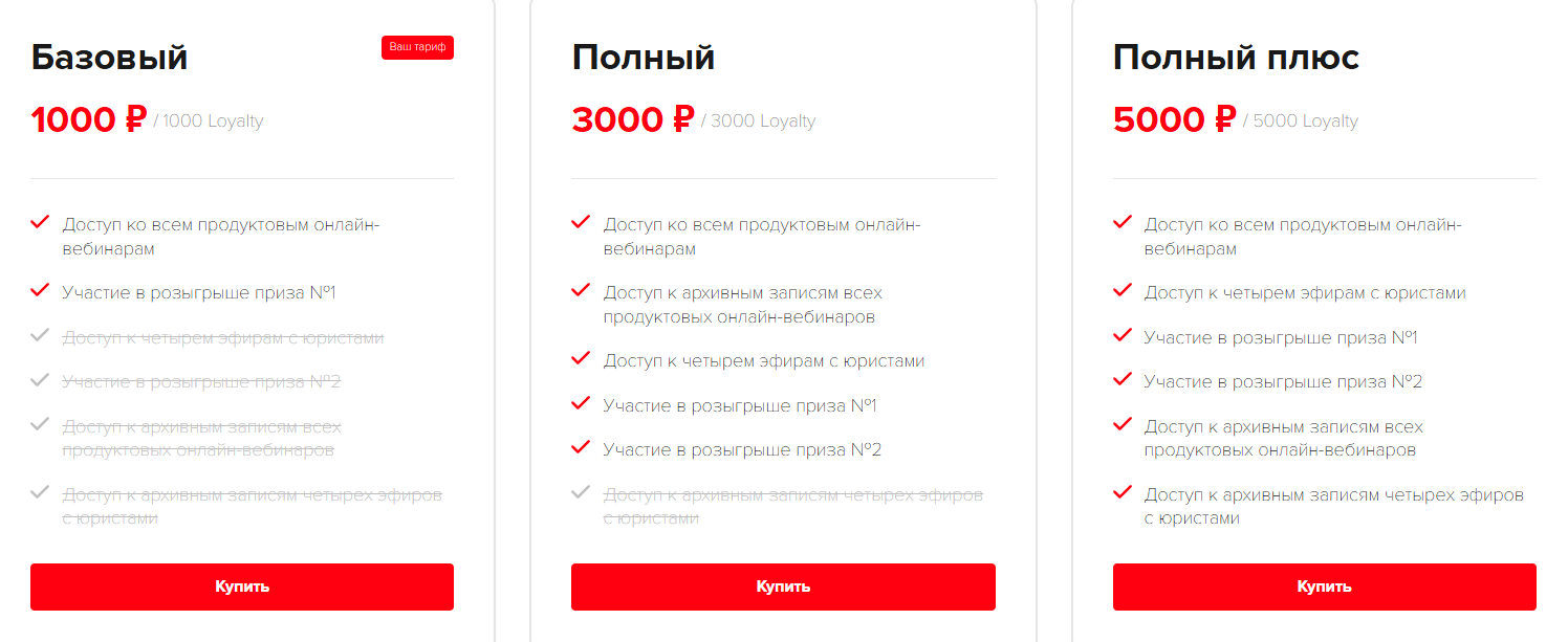 - ● Тариф «Полный плюс»: доступ без ограничений к любым материалам, архиву и полному розыгрышу бесплатного отдыха
