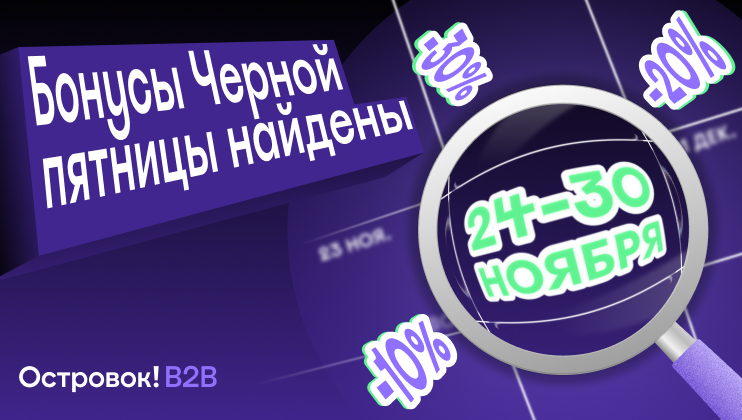 Сервис онлайн-бронирования для профессионалов туриндустрии Островок В2В присоединяется к Черной пятнице и запускает скидки на отели и трансферы для партнеров платформы. Воспользоваться акционными предложениями можно до 30 ноября.