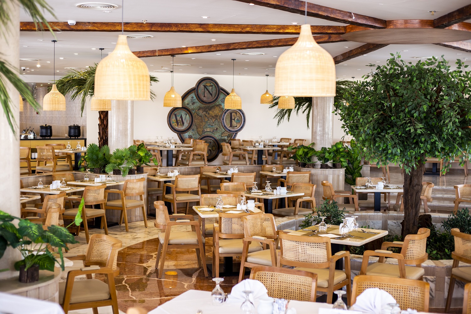 Кроме того, на пляже работают четыре ресторана и бара: Aquarius, Aqua Park, Infinity, and Beach Bar. Здесь подают напитки и легкие закуски. Столики расположены с видом на море.